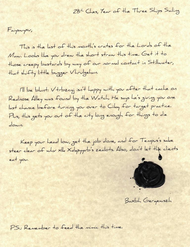 Zhentarim letter: found in Trollskull Manor Share this: Click to share on X (Opens in new window) X Click to share on Facebook (Opens in new window) Facebook Like Loading... Related Leave a comment Cancel reply Δ
