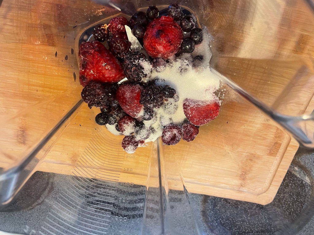 - Combine all the ingredients for the coulis in the blender and blitz together until a sauce forms. Add a splash or two of water if needed to help this process along.