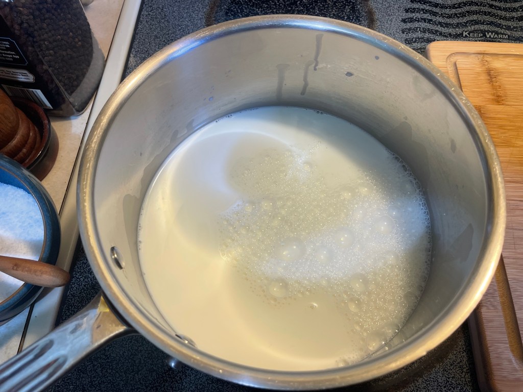 - Heat milk in a large pot over low-medium heat until it just starts to steam.