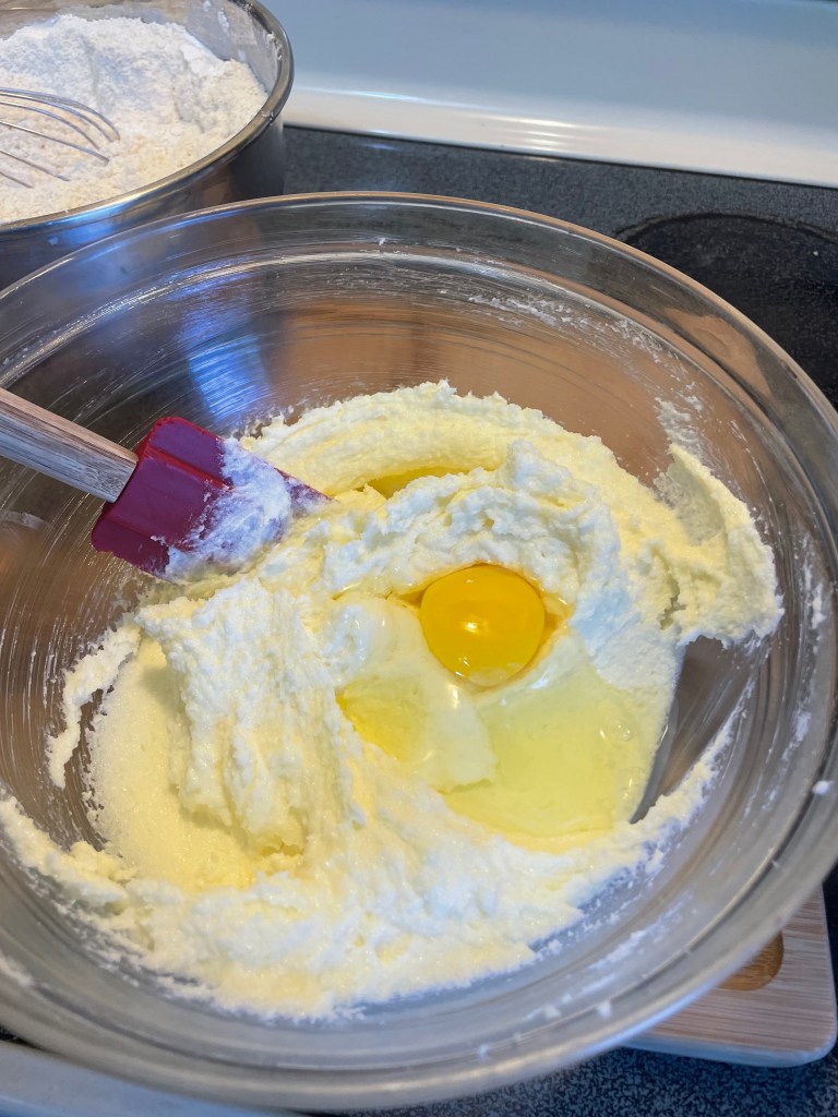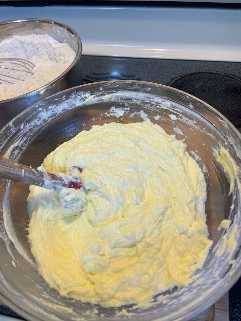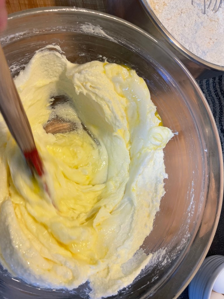 - Cream butter and sugar together (stand mixer is recommended) until softly fluffy and a creamy color.