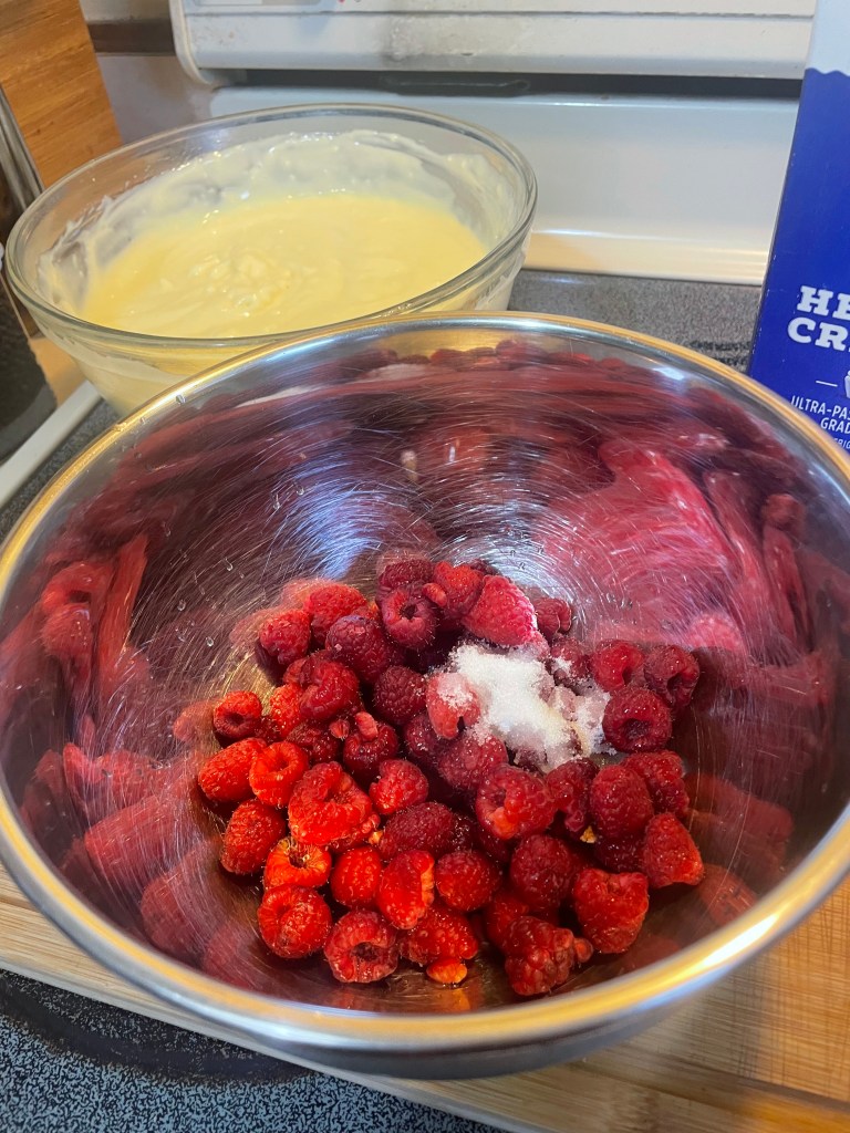 - Combine the fresh raspberries with the 15ml/1tbsp cream sherry and sugar. Mix gently and leave in the fridge to macerate until ready to use.