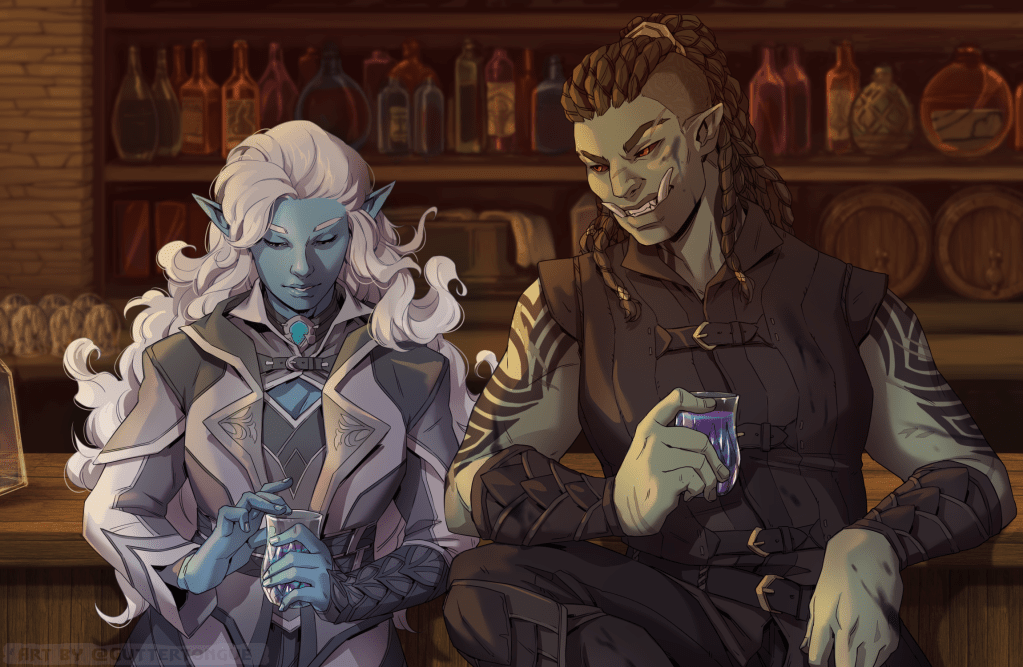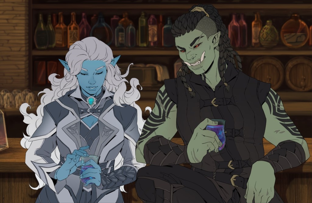 So here they are, Elodie and Yaghra, having just met, fought, and now enjoying their first drink together.